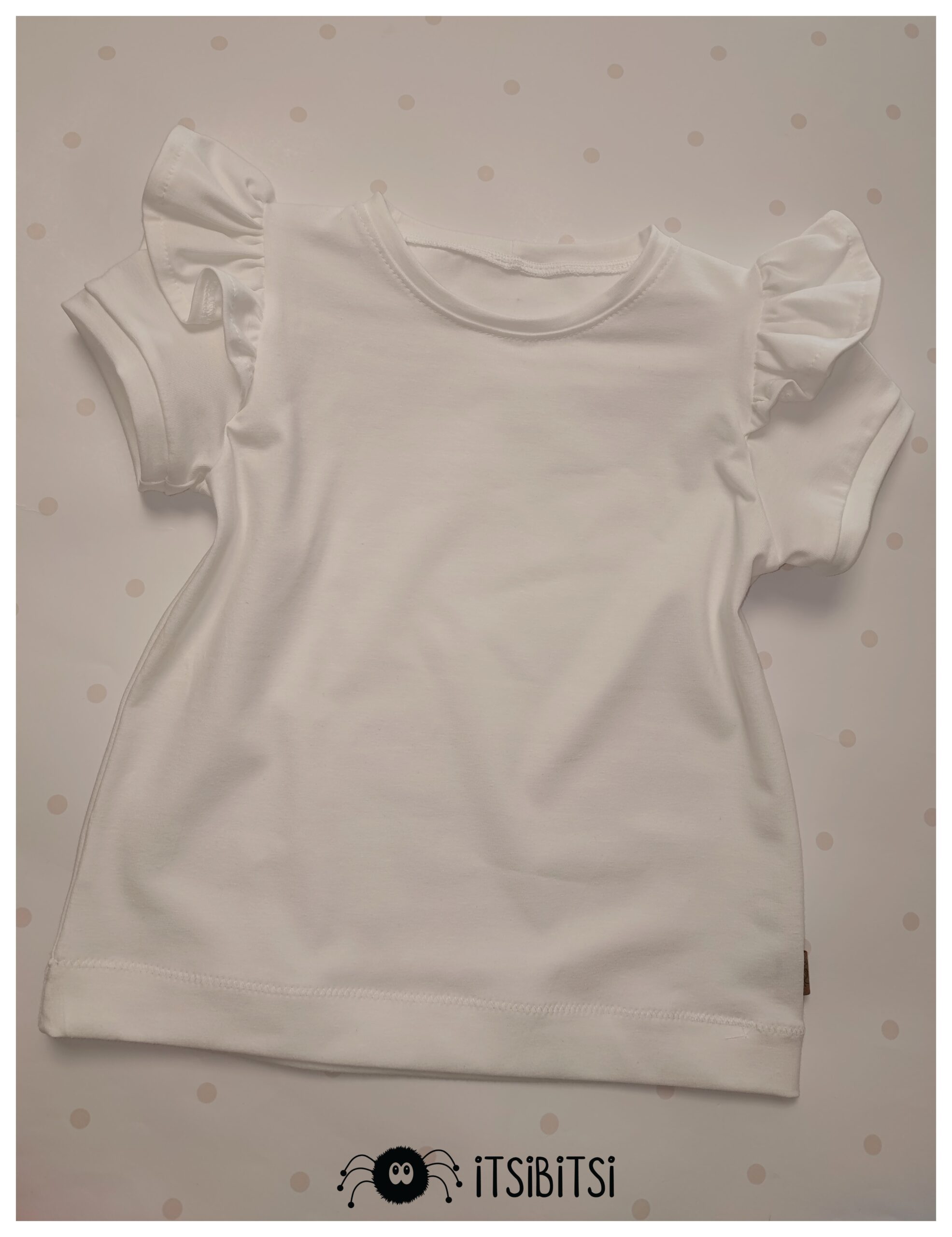 Naroči se lahko v velikostih od 86-152cm z volančki na ramenih ali brez.